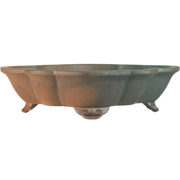 Bonsaischale 25×20.5x6cm Dunkelbraun Lotusförmig Unglasiert