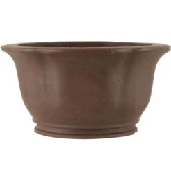Bonsaischale (Unglasiert, Dunkelbraun, Rund), handgemacht, in den Abmessungen: 26cm Länge, 26cm Breite, 14cm Höhe.