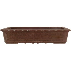 Bonsaischale (unglasiert, dunkelbraun, rechteckig) in den Abmessungen: 31cm Länge, 22.5cm Breite, 6.5cm Höhe. Sehr gute Qualität aus der berühmten Töpferstadt Yixing.