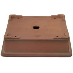 Bonsaischale (unglasiert, antik-braun, rechteckig), handgemacht, in den Abmessungen: 34.5cm Länge, 29cm Breite, 10cm Höhe.