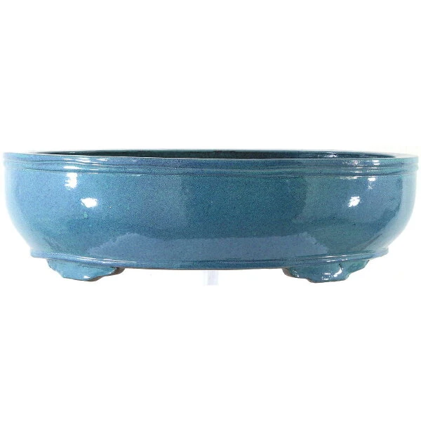 Bonsaischale (Glasiert, Hellblau, Oval), handgemacht, in den Abmessungen: 49cm Länge, 37cm Breite, 14cm Höhe.