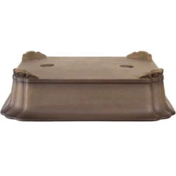 Bonsaischale (unglasiert, antik-grau, rechteckig), handgemacht, in den Abmessungen: 57cm Länge, 46cm Breite, 15cm Höhe.