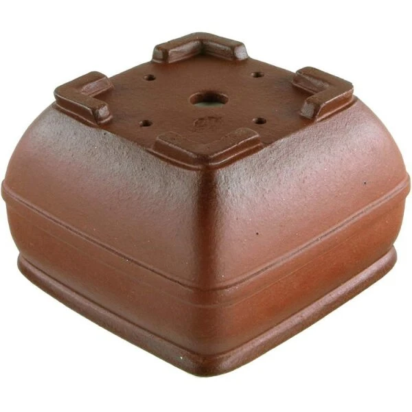 Bonsaischale (Unglasiert, Antik Braun, Quadratisch), Masteredition, in den Abmessungen: 9cm Länge, 9cm Breite, 6cm Höhe.