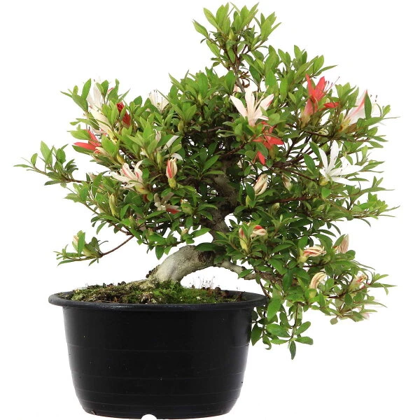 Besonders auffällig ist im April-Juni die üppige Blüte mit leuchtend Einzelblüten. Die Satsuki Azalee ist gut für die Gestaltung eines dekorativen Blütenbonsai geeignet. Oft haben Azaleen Bonsai kräftige Stämme.